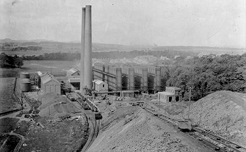 Niddry Castle oilworks was very modern and efficient when it was built at the turn of the twentieth century. Electricity was used for much of the work and for the mineral railway lines that carried the shale to the works. It exploited untapped reserves of shale below the Hopetoun Estate. The work was hot and heavy, and still relied on muscle to do the hard work. Patrick Gallagher, an Irishman who came to work in the shale industry, tells that the men taking burnt shale out of the retort would drink at least half a gallon of water every three hours but it just ran out of them as sweat.
